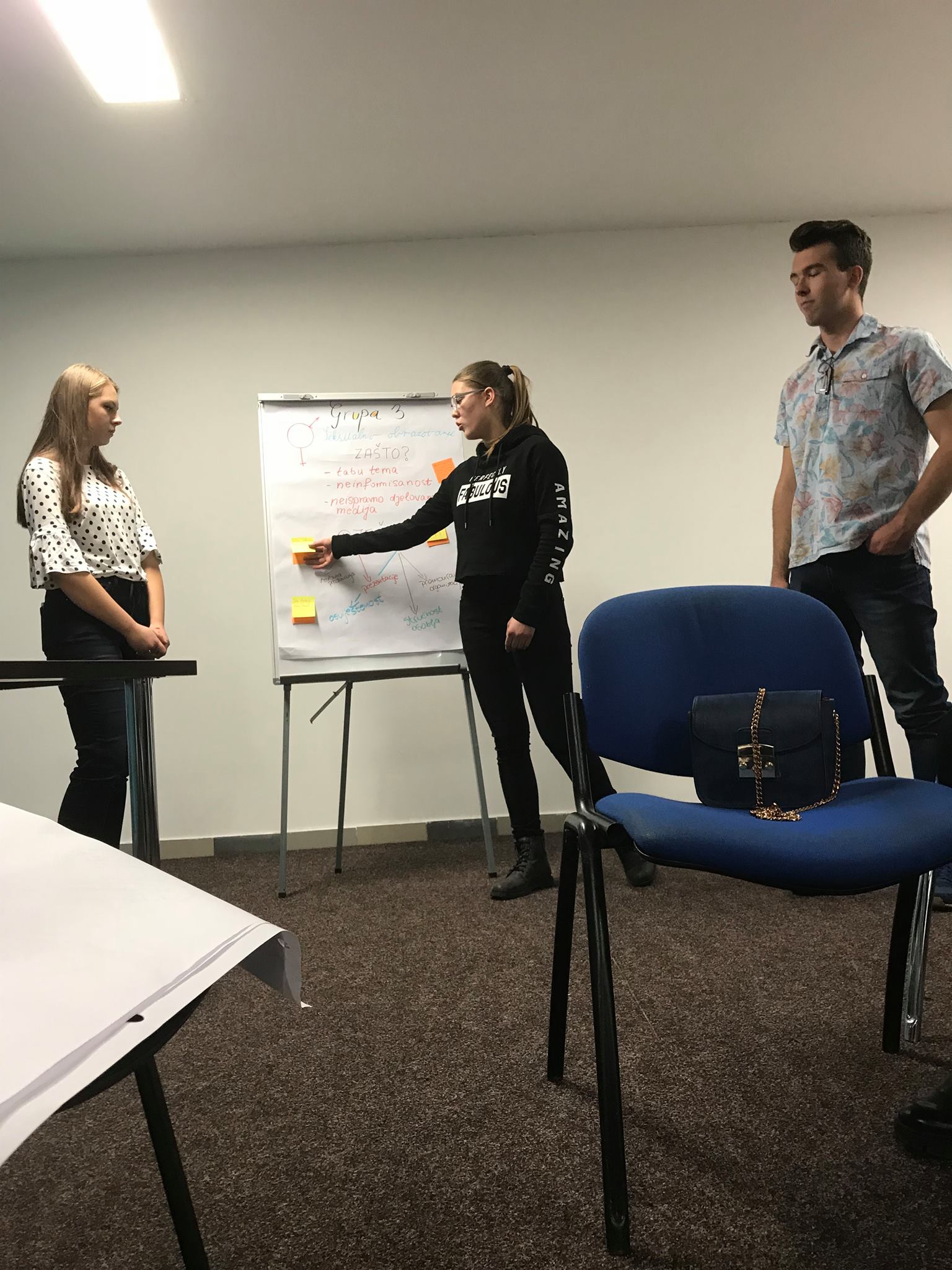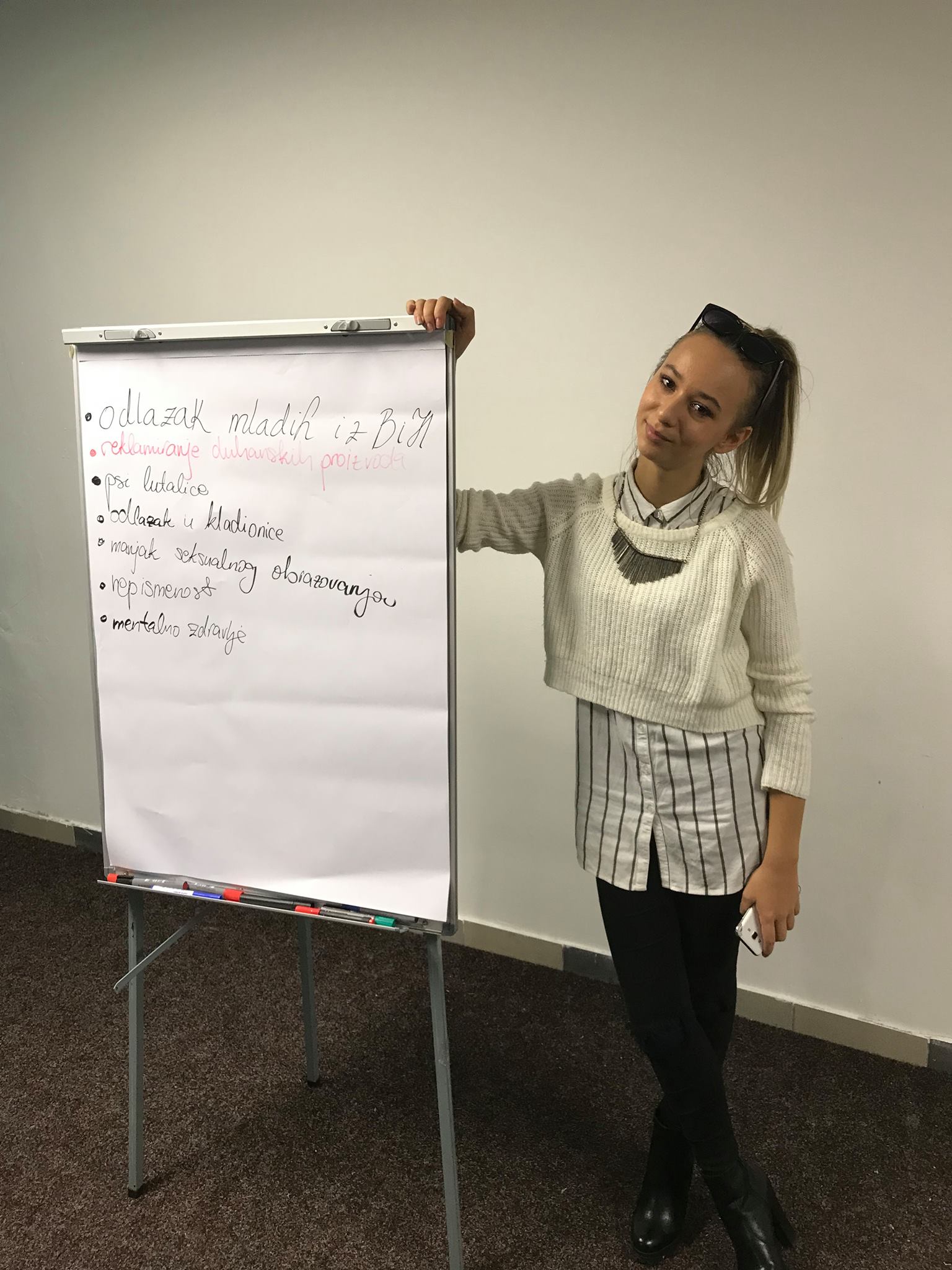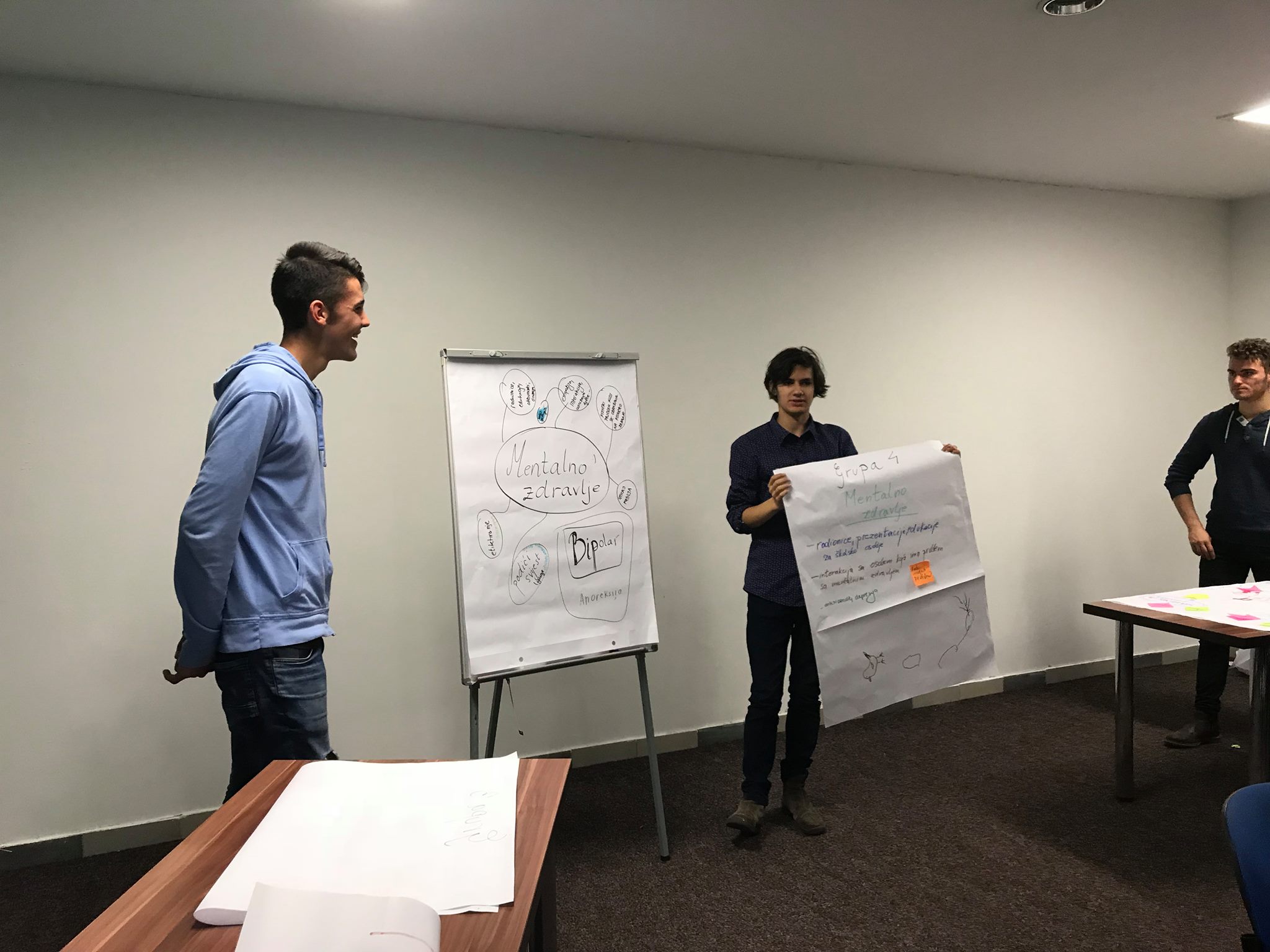 Podijeljeni u četiri grupe, iznosili su svoja mišljenja, stavove i ideje te prezentovali moguća rješenja problemskih pitanja vezanih za mentalno zdravlje, pse lutalice,potrebu uvođenja seksualnog odgoja u srednje škole i odlazak mladih iz naše države.