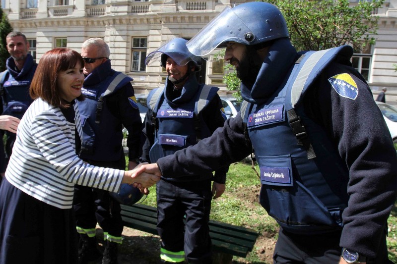 Dodala je da nas podsjećaju incidenti, kad neko izgubi život u minskom polju, te istaknula da to moramo preduprijediti upravo ovakvim akcijama, da pričamo o tome. Povodom 4. aprila, Međunarodnog dana borbe pritiv mina, Federalna uprava civilne zaštite, kao vladina organizacija koja se, između ostalog, bavi i humanitarnim deminiranjem na području FBiH, pridružila se godišnjoj kampanji # TogetherAgainstMines (Zajedno protiv mina) s ciljem podizanja globalne svijesti o problemimam koje predstavljaju nagazne mine i druga eksplozivna sredstva zaostala iz rata.