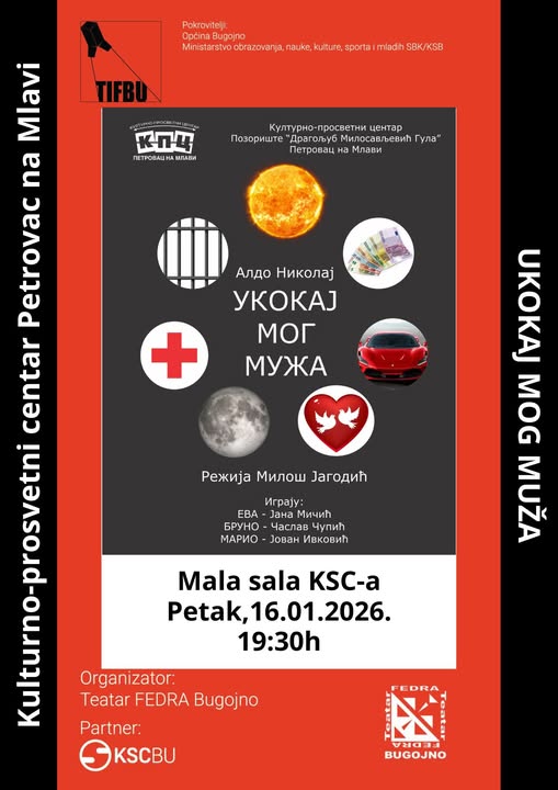 Predstava će biti izvedena u Maloj sali KSC-a Bugojno s početkom u 19:30.